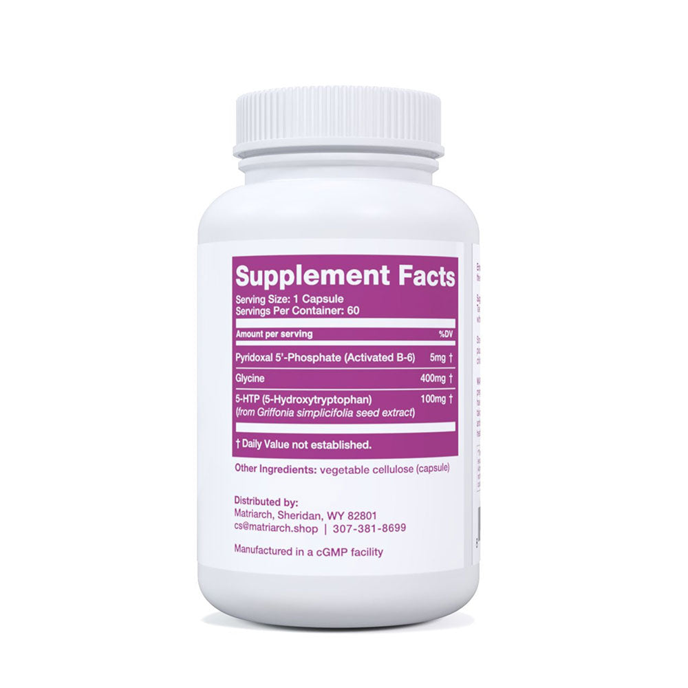 This 5-HTP is naturally derived from the seeds of the African plant Griffonia simplicifolia and is combined with activated vitamin B-6 as active P-5-P, an important co-factor in serotonin metabolism. Also included is the amino acid glycine, with calming and blood sugar regulating properties.