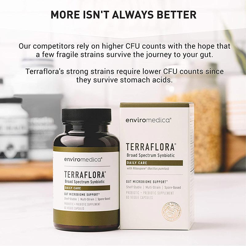 Terraflora® Daily Care is a synbiotic supplement with soil based probiotics boosted with premium organic prebiotics.
