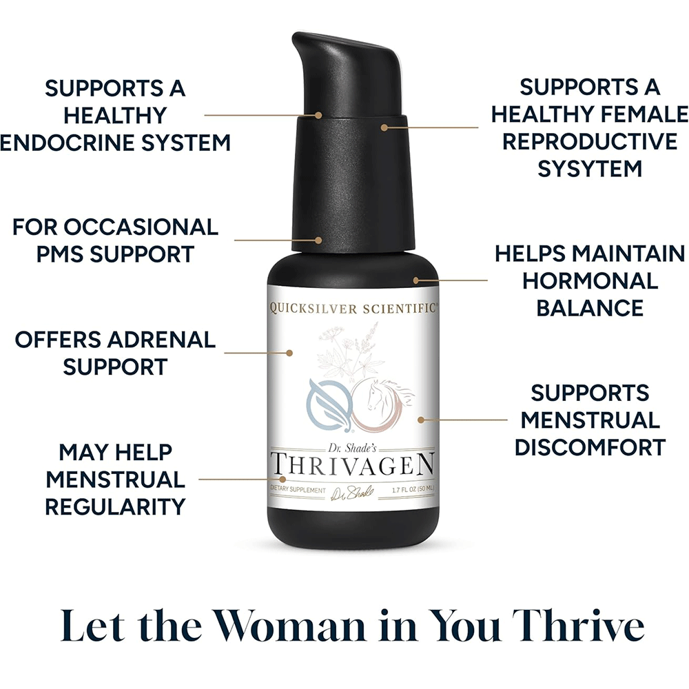 Thrivagen is designed to help support regular menstrual cycles, balanced mood, and immunity*. It can also support resilience and endurance during stressful times, as well as improved sleep.*